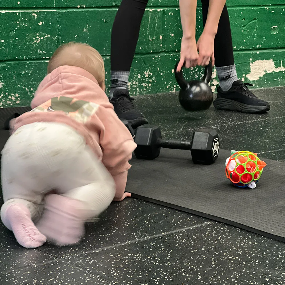 Absolutely. We know childcare is the biggest barrier to getting back to the gym. Your little one is welcome to stay in their pram or on a play mat right by your side while you train.
